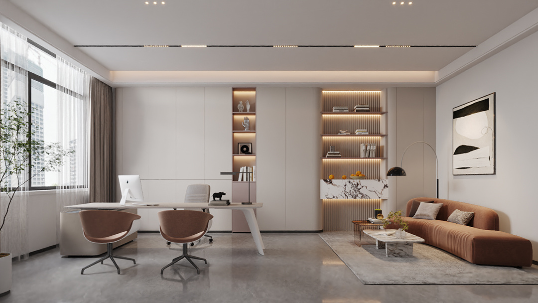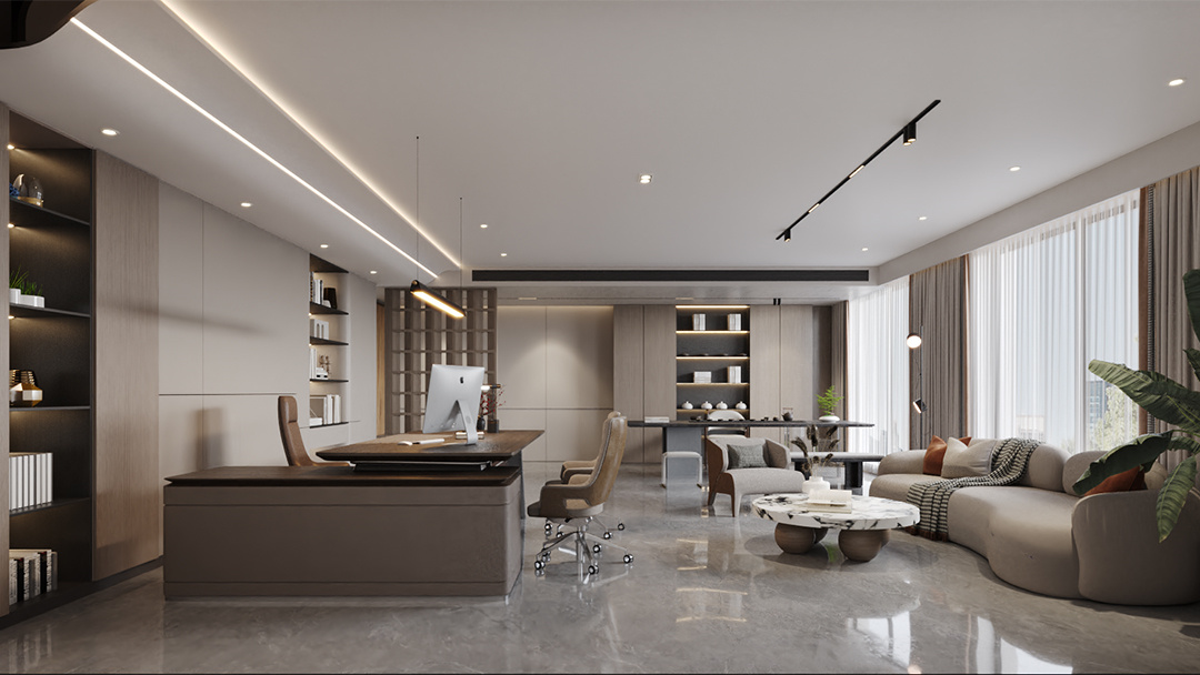 高管辦公室,注重私密性與舒適性,以沉穩(wěn)色調(diào)與高端家具營造尊崇氛圍。會議室,配備先進(jìn)視聽設(shè)備與智能控制系統(tǒng),滿足多樣化會議需求。