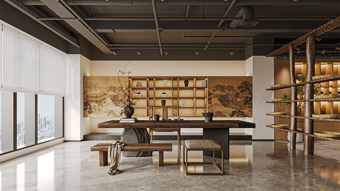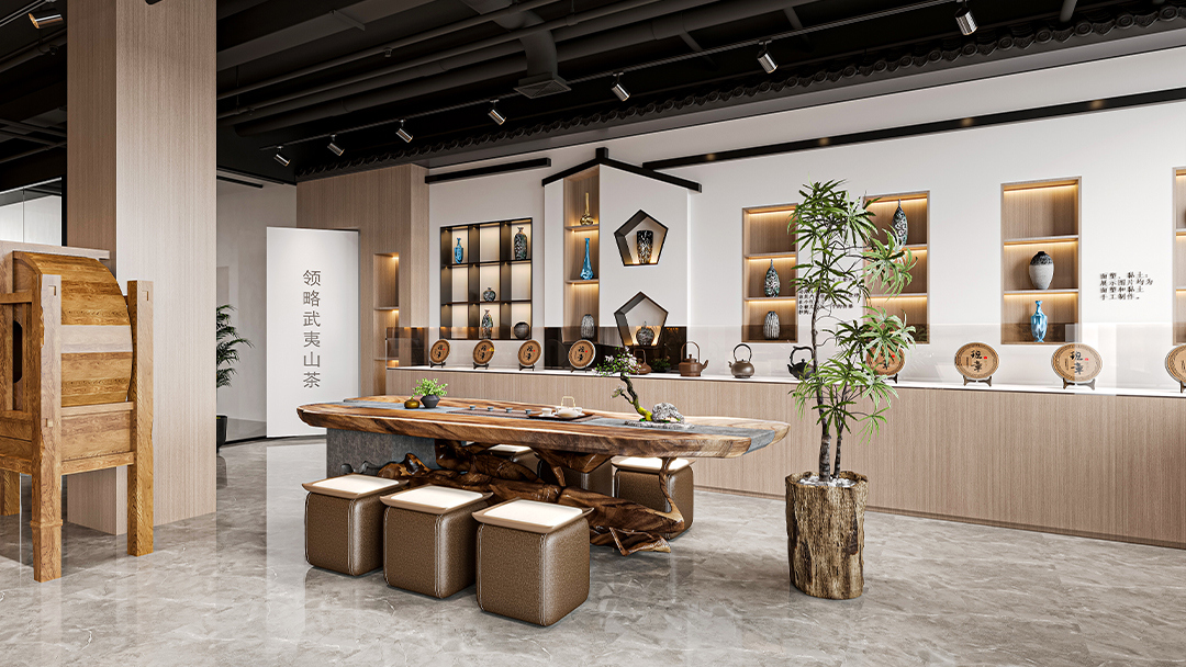 設置開放式點茶區(qū)、私密包廂及景觀庭院,例如大廳以抬高地臺劃分主客位序,包間融入榻榻米茶席與獨立枯山水造景,動線設計參考《清明上河圖》的街巷邏輯,引導顧客沉浸式體驗宋人雅集。 - 文化符號的創(chuàng)新表達