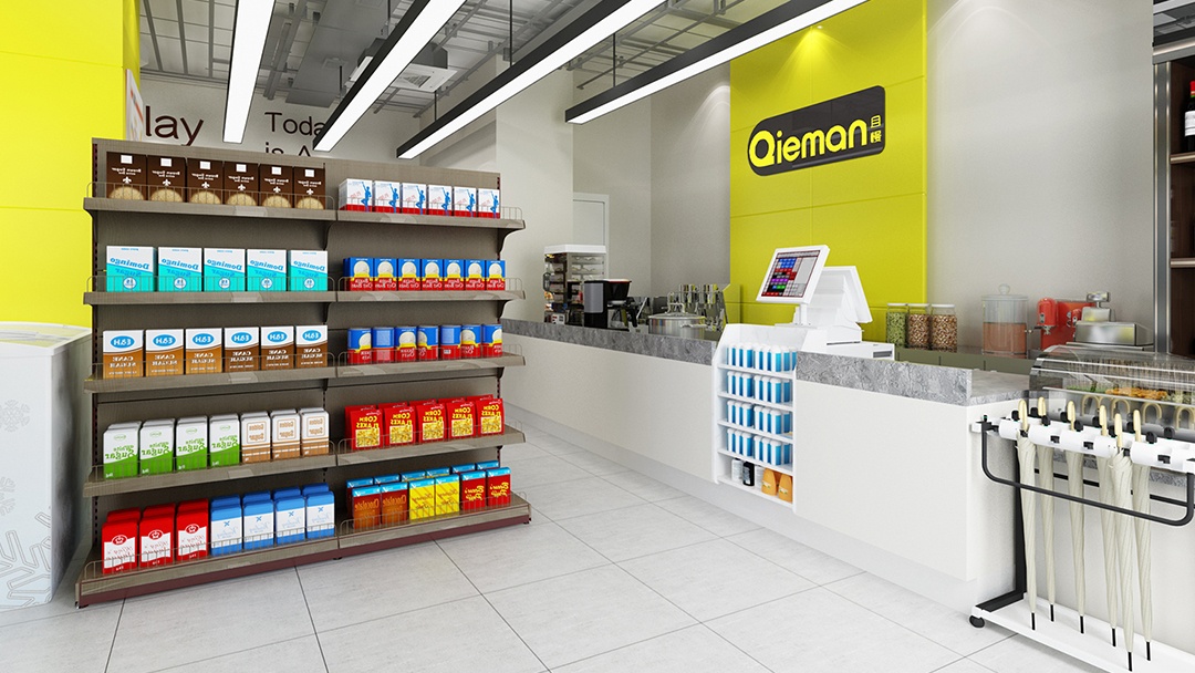 材質(zhì)選擇上,以環(huán)保啞光板材搭配金屬收邊,局部融入玻璃元素,平衡實用性與設(shè)計感。燈光方案采用3000K暖光與4000K中性光組合,重點區(qū)域增設(shè)檸檬黃軌道射燈,營造溫馨且富有活力的購物氛圍,讓每一次選購都成為品質(zhì)生活的儀式感體驗。