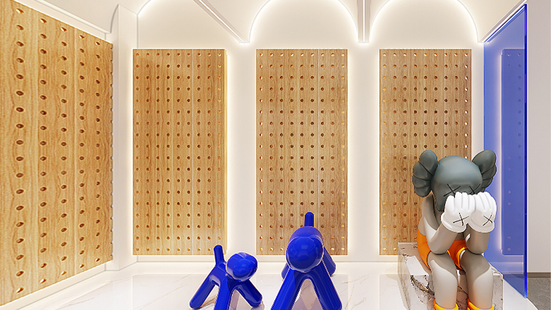 通過Z型主通道設計引導顧客自然流向各功能區(qū),同時設置獨立緩沖區(qū)降低寵物應激反應?;铙w展示區(qū)采用低飽和度莫蘭迪色調玻璃隔斷,營造安靜觀察環(huán)境。