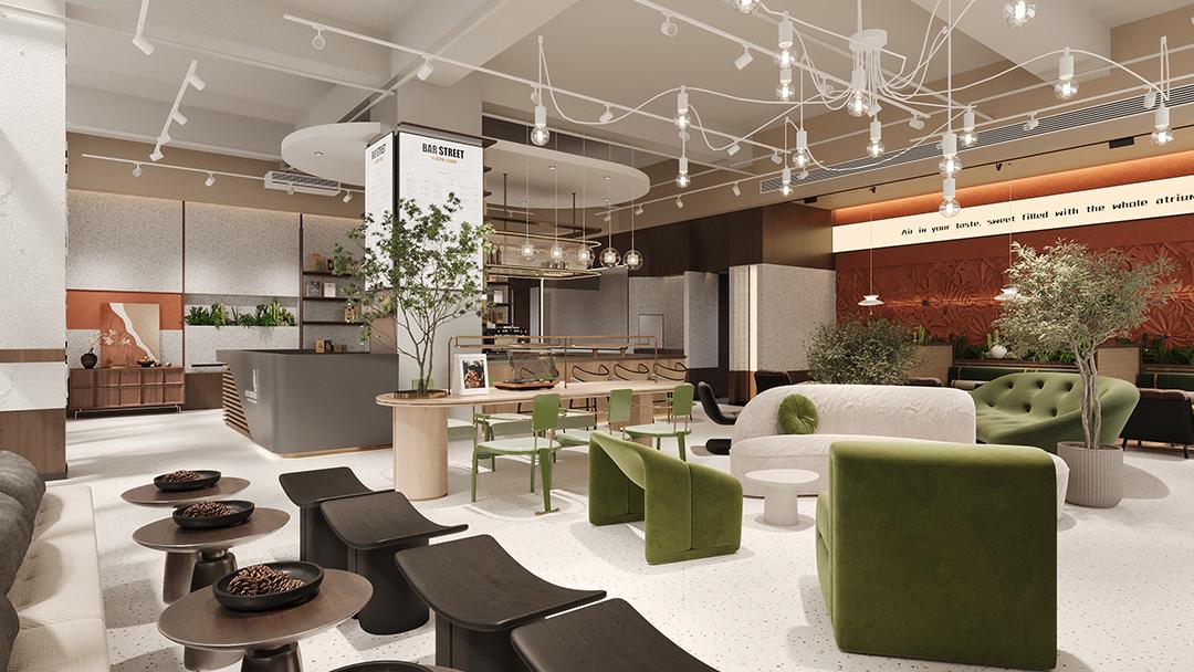根據(jù)品牌調(diào)性選擇適配風(fēng)格——如現(xiàn)代主義風(fēng)格的簡約線條、自然主義風(fēng)格的綠植生態(tài)墻,或復(fù)古風(fēng)格的做舊皮革與銅制燈具,通過材質(zhì)、色彩與光影的搭配,構(gòu)建獨特的空間記憶點。 - 功能與美學(xué)的深度結(jié)合