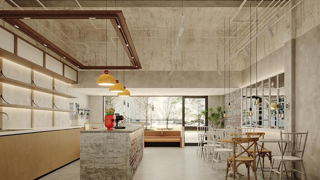 通過落地窗引入自然光,輔以暖黃色燈串和藤編吊燈,打造層次豐富的照明效果;店內(nèi)點綴琴葉榕、薄荷綠植墻或懸掛式盆栽,讓空間煥發(fā)生機(jī),呼應(yīng)“城市綠洲”的主題。