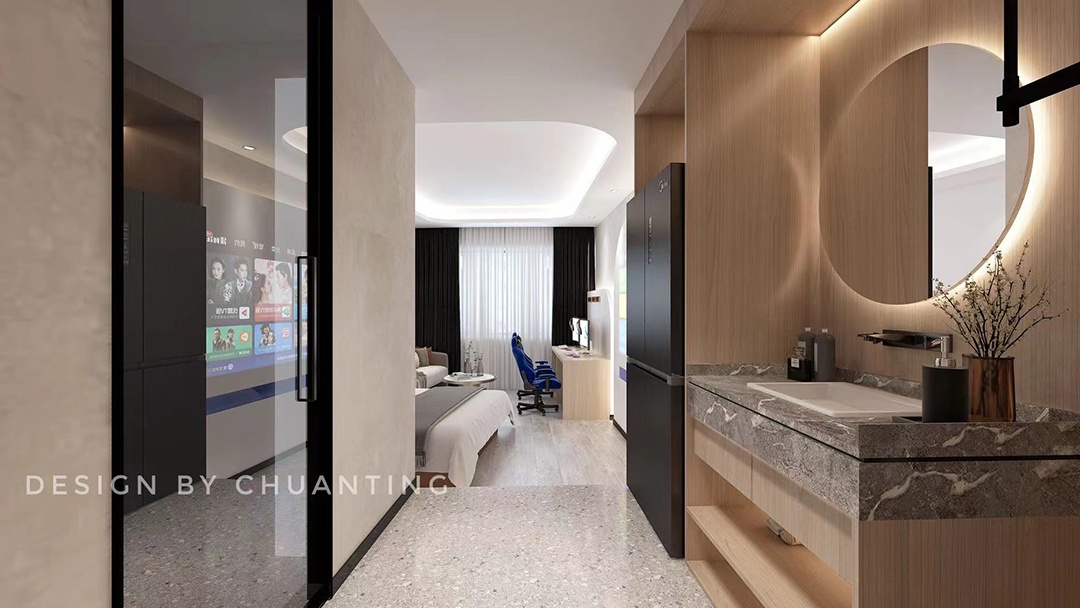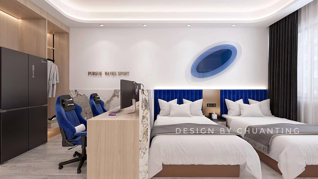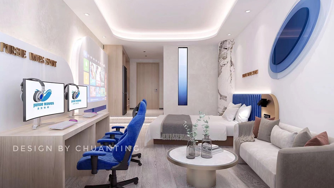 在設(shè)計(jì)上,注重空間規(guī)劃的合理性。對于電競酒店客房,會(huì)根據(jù)不同房型布局,確保滿足住宿與電競娛樂的雙重功能,同時(shí)兼顧舒適性與科技感。如設(shè)置合理的電競設(shè)備擺放位置、舒適的休息區(qū)域等。