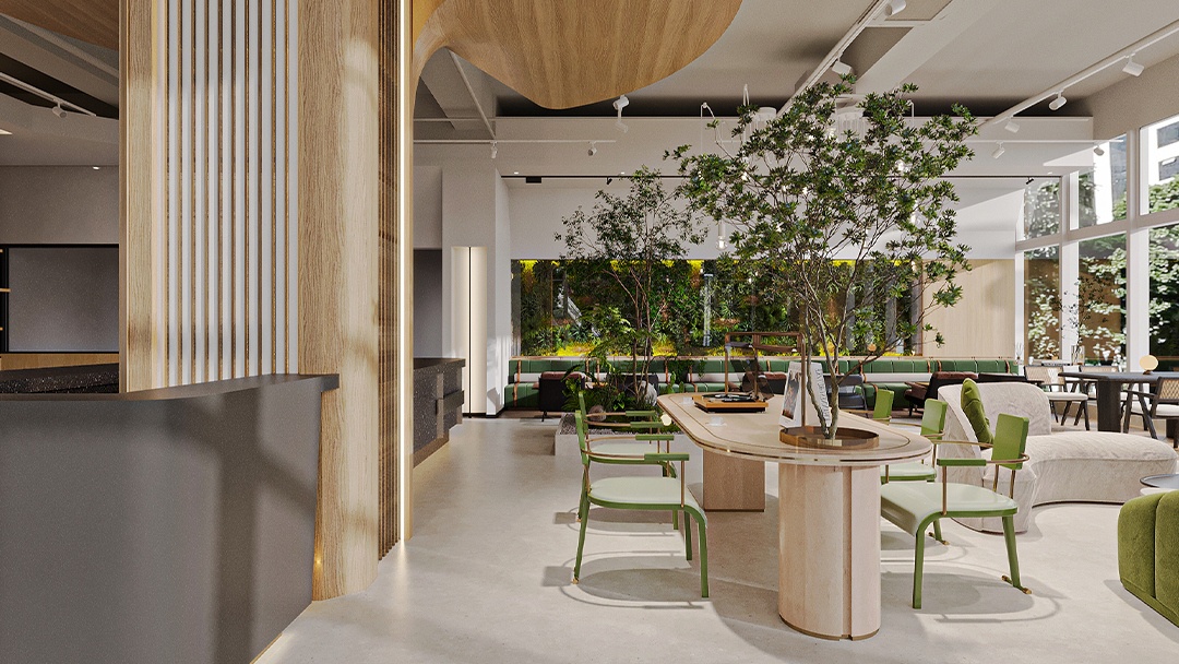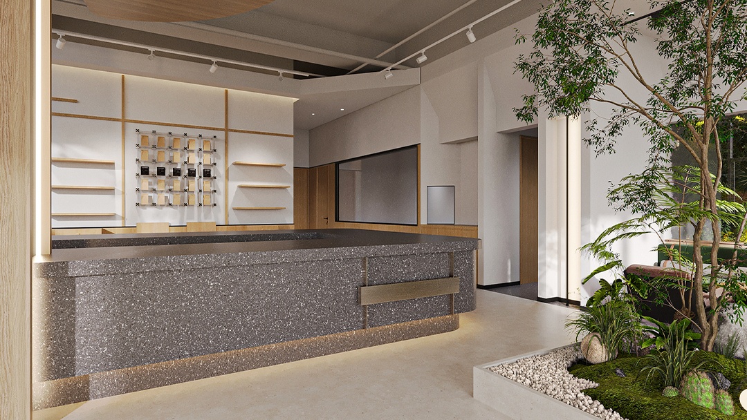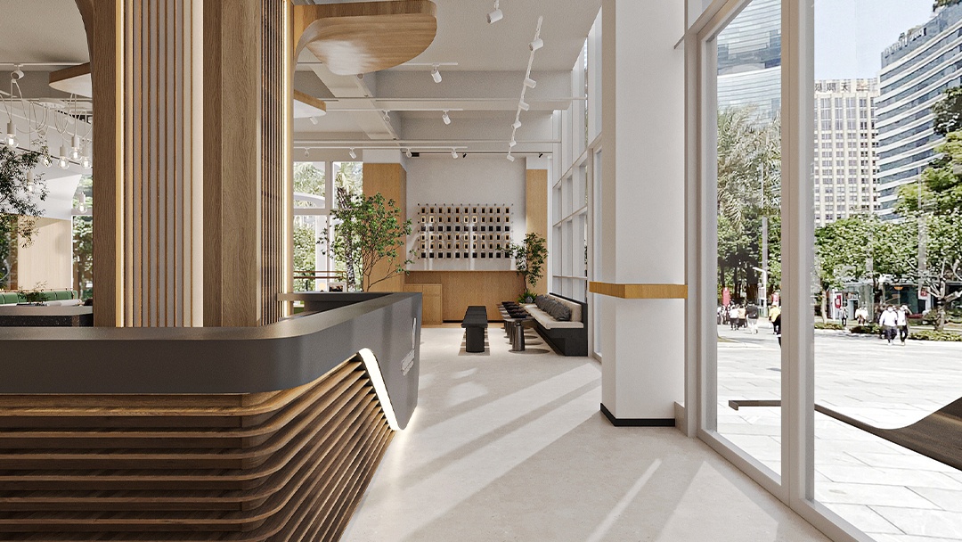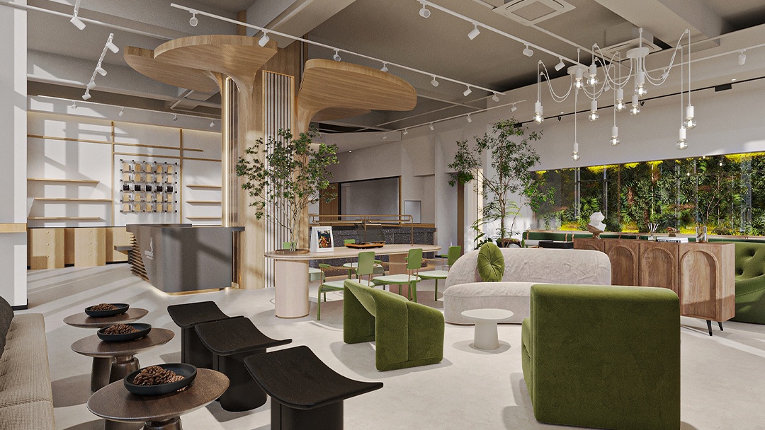 杭州高端烘焙店裝修設計,本案以“可食用藝術館”為核心理念,空間以博物館級燈光與大理石材質營造沉浸式展陳氛圍。定制弧形玻璃展柜懸浮于金屬網格系統(tǒng)之上,精準呈現面包的工藝細節(jié)。中央島臺融合可升降烘焙演示設備,打造劇場化互動體驗。墻面采用微水泥與黃銅鑲邊,結合香氛與背景音效系統(tǒng),從視覺、嗅覺、聽覺多維度構建高端感知。后廚透過環(huán)形霧化玻璃若隱若現,在保持神秘感的同時傳遞專業(yè)級標準。