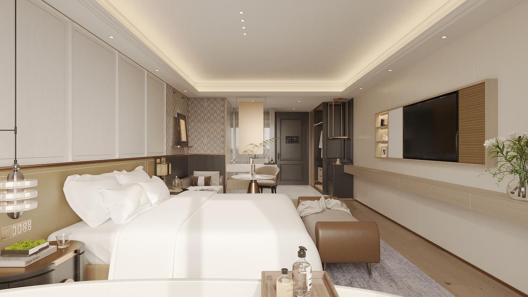 杭州設(shè)計(jì)師酒店設(shè)計(jì)裝修,本案以“城市留白”為設(shè)計(jì)哲學(xué),將西湖的靜謐感融入空間。通過無主燈磁吸軌道系統(tǒng)與大面積微水泥墻面的運(yùn)用,構(gòu)建出柔和的光影層次。定制懸浮式家具與隱藏式收納系統(tǒng),實(shí)現(xiàn)功能與美學(xué)的統(tǒng)一。整體以低飽和度色彩為基調(diào),局部點(diǎn)綴金屬與石材細(xì)節(jié),營造出兼具東方禪意與當(dāng)代極簡的沉浸式旅居體驗(yàn)。