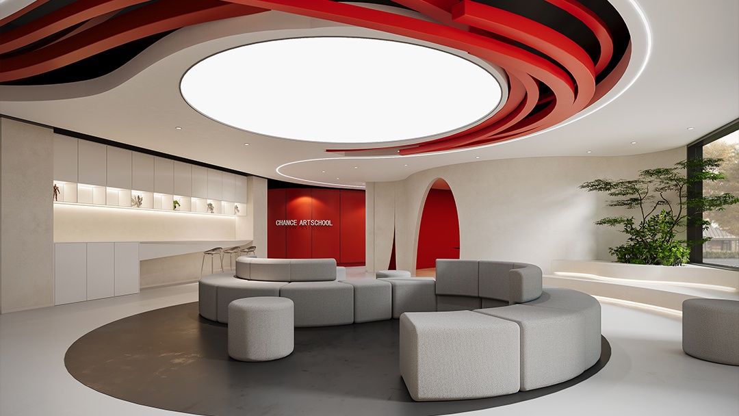 杭州藝術(shù)類培訓(xùn)機(jī)構(gòu)裝修設(shè)計,本案將空間本身作為藝術(shù)教學(xué)媒介。墻面采用可擦寫涂層與磁性展示系統(tǒng),地面保留部分水泥肌理用于即興創(chuàng)作。定制可升降畫架與旋轉(zhuǎn)儲物模塊,實現(xiàn)空間場景自由重組。自然光通過漸變玻璃幕墻濾入,搭配軌道射燈系統(tǒng)滿足多媒介創(chuàng)作照明需求。中心挑空區(qū)設(shè)“創(chuàng)想階梯”,兼具作品展示、即興演講與休憩功能,營造開放流動的藝術(shù)共創(chuàng)氛圍。