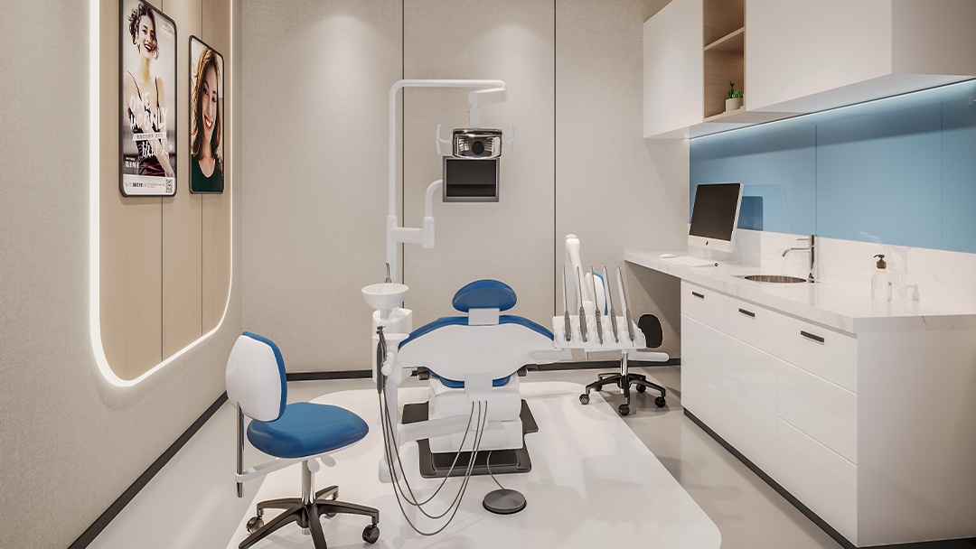 針對口腔診所的特殊性,博妍裝飾從三大維度打造高性價比方案:在功能布局上,嚴(yán)格遵循醫(yī)療規(guī)范,劃分接待區(qū)、診療區(qū)、消毒供應(yīng)區(qū)等核心板塊,確保潔污分流、動線高效;在材料選擇上,采用醫(yī)用級抗菌板材、無縫地面處理系統(tǒng)及環(huán)保涂料,既保障環(huán)境安全又控制長期維護(hù)成本;在人性化體驗(yàn)方面,通過柔光漫反射照明、低飽和度色彩搭配以及靜音隔音設(shè)計,提升患者舒適度的同時降低運(yùn)營能耗。