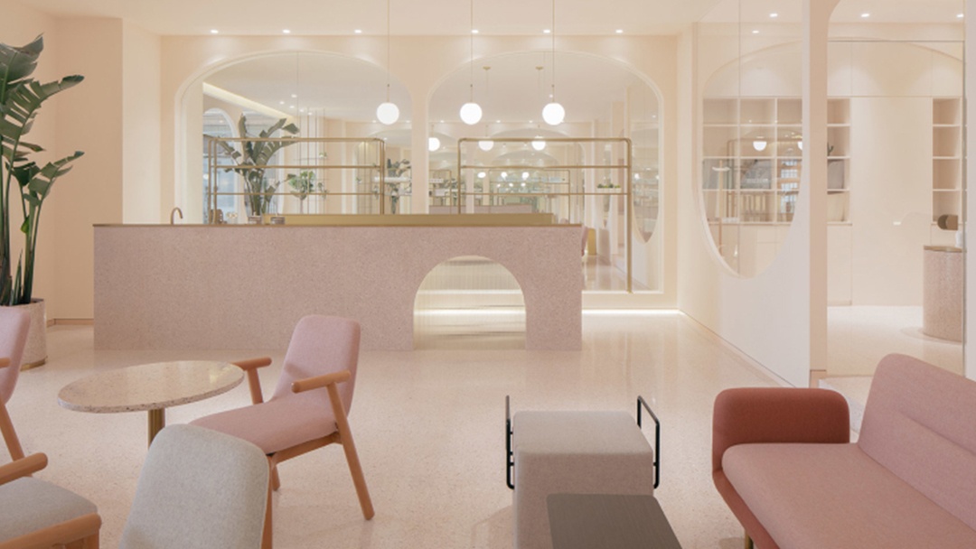 整體色調(diào)。以奶油白為主,搭配低飽和度粉色桌椅,營造甜而不膩的視覺氛圍,讓顧客從踏入瞬間便卸下疲憊,沉浸于治愈系的變美體驗。空間設(shè)計上,采用玻璃隔斷劃分功能區(qū),既保證私密性,又通過光影折射增強通透感,提升空間層次。定制大理石紋接待臺與絨面沙發(fā),細節(jié)處點綴金屬裝飾,凸顯精致質(zhì)感。開放式美甲區(qū),配備智能補光鏡與人體工學(xué)椅,滿足多元化服務(wù)需求;VIP包間,則以粉色紗簾與暖光燈帶營造專屬浪漫。