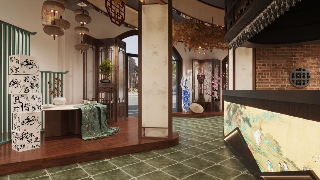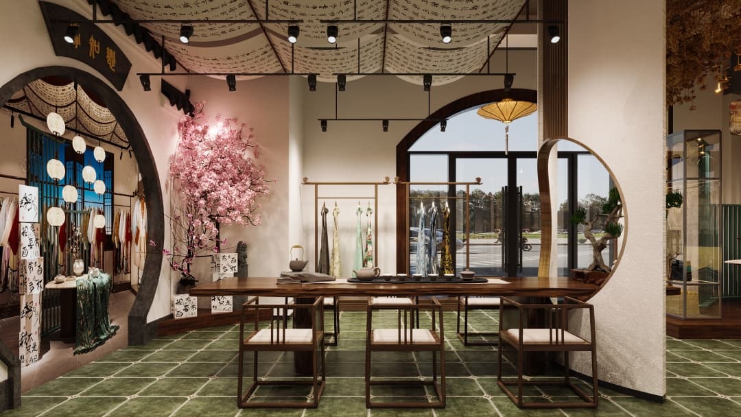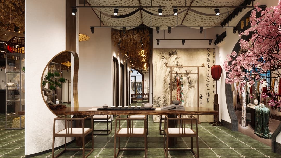 - 文化符號提取:運用青花瓷紋樣、中式屏風(fēng)等傳統(tǒng)元素,結(jié)合金屬框架與霓虹燈帶形成視覺碰撞,既保留文化底蘊又彰顯年輕活力;