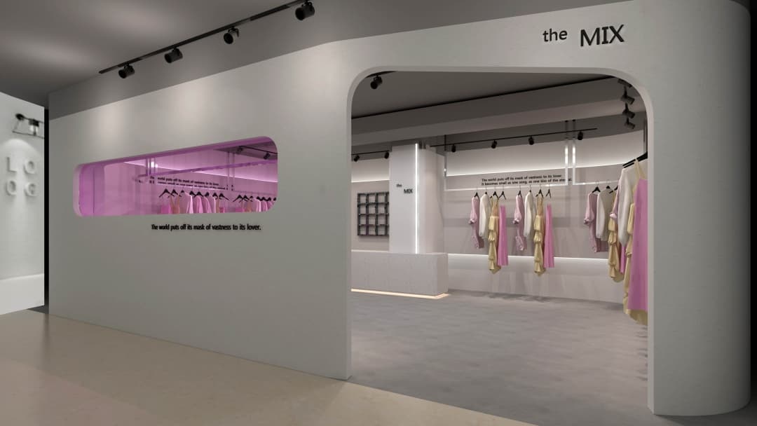 :設(shè)置半圍合試衣區(qū)與靜態(tài)陳列區(qū),利用留白藝術(shù)突出服裝主體,提升顧客探索體驗。