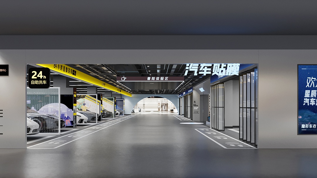 杭州智能汽車美容院裝修設(shè)計,本案構(gòu)建全流程智能養(yǎng)護(hù)場景??臻g采用白色高光納米涂層墻面與深灰導(dǎo)光地膠,頂部集成無影AI檢測光源陣列,可自動識別車身劃痕與漆面狀態(tài)。施工區(qū)配備機(jī)械臂輔助清洗系統(tǒng)與物聯(lián)網(wǎng)水質(zhì)監(jiān)測終端,客戶可通過手機(jī)端實時查看護(hù)理數(shù)據(jù)圖譜。休息區(qū)設(shè)置全息投影沙盤,動態(tài)演示護(hù)理工藝與材料特性,以科技透明化重塑高端汽車美容的服務(wù)信任體系。