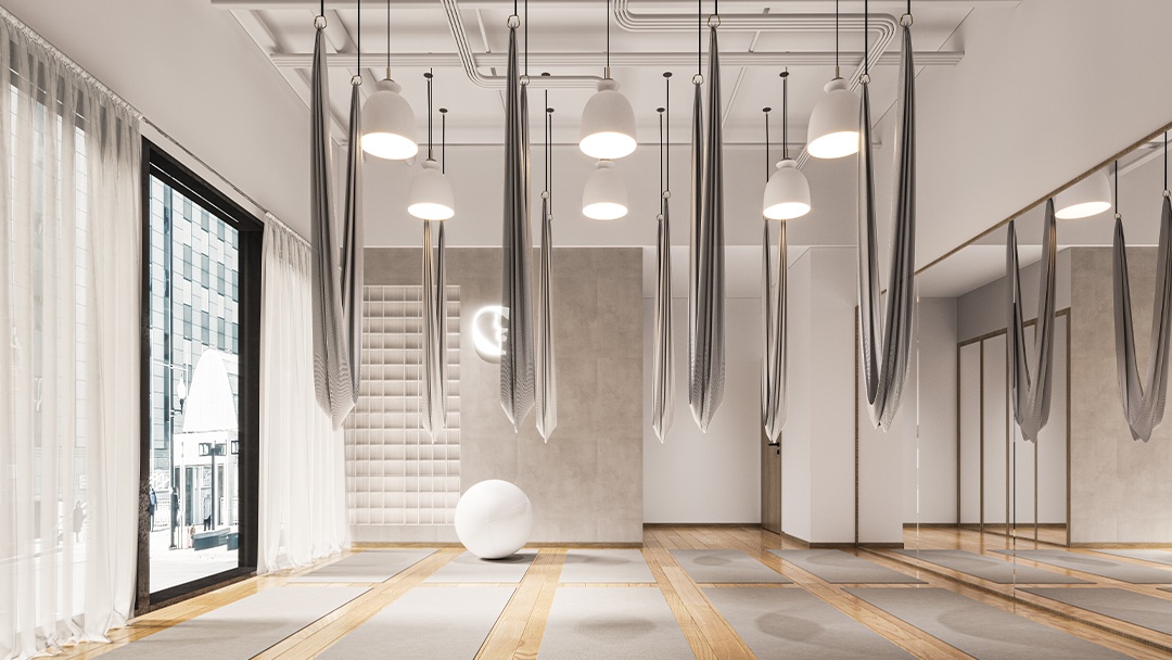 杭州瑜伽普拉提館裝修設(shè)計(jì),本案以「流動(dòng)的平衡」為設(shè)計(jì)理念,空間采用柔弧曲面墻與橡木地板結(jié)合,營(yíng)造溫暖包容的氛圍。定制可調(diào)節(jié)天窗系統(tǒng),精準(zhǔn)控制自然光入射角度,配合隱藏式聲學(xué)穹頂優(yōu)化聽覺(jué)體驗(yàn)。核心區(qū)設(shè)置懸浮式普拉提重組器械墻,實(shí)現(xiàn)空間多功能轉(zhuǎn)換。冥想?yún)^(qū)墻面嵌入熱感壁畫,接觸時(shí)顯現(xiàn)植物脈絡(luò)光影。整體以低飽和色彩為基調(diào),打造身心合一的沉浸式療愈場(chǎng)域。