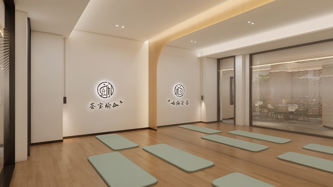 杭州禪意瑜伽館裝修設(shè)計(jì),本案以「空谷回音」為意境內(nèi)核,將江南園林的借景手法引入室內(nèi)。以夯土墻面為背景,頂部開(kāi)設(shè)條形天窗,隨著時(shí)辰變化在微水泥地面投下流動(dòng)光斑。定制弧形竹編屏風(fēng)區(qū)隔空間,搭配枯山水白沙庭院造景。重點(diǎn)打造「聽(tīng)雨冥想軒」——隱藏式噴霧系統(tǒng)配合仿真雨聲音頻,蒲團(tuán)下設(shè)置地暖溫控系統(tǒng)??臻g無(wú)主燈設(shè)計(jì),僅以陶罐燈與壁龕燭光點(diǎn)綴,營(yíng)造出靜觀內(nèi)省的東方禪修之境。