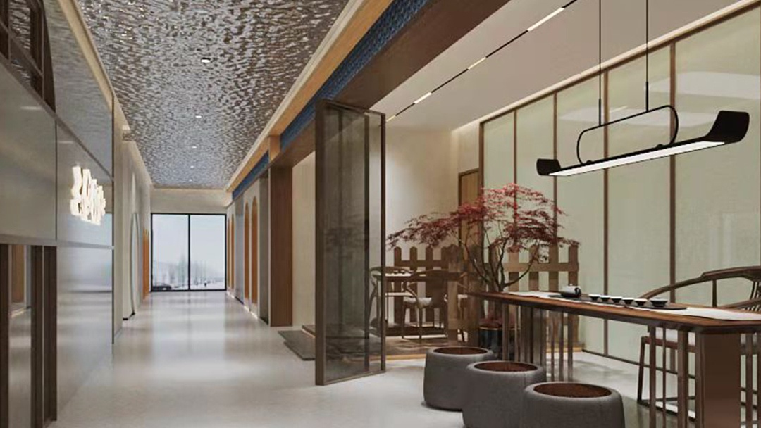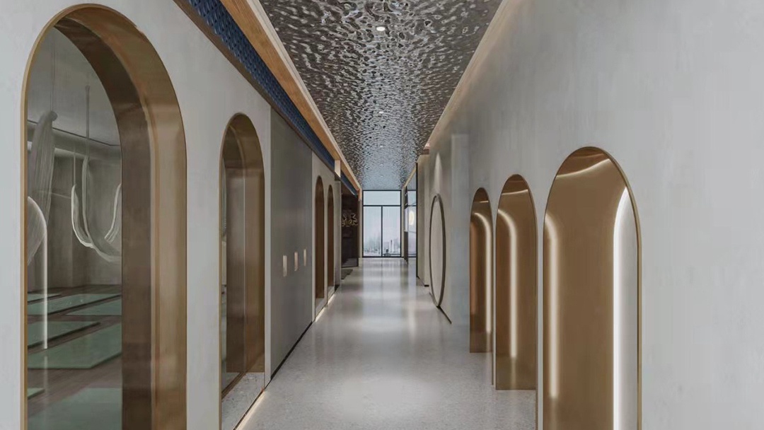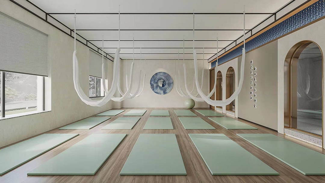 杭州瑜伽館裝修設(shè)計,本案以「城市冥想綠洲」為定位,將自然元素與靜謐美學(xué)深度融合??臻g以淺原木與麻編材質(zhì)構(gòu)筑,弧形墻面嵌入鏤空竹格屏風(fēng),光影隨時間流轉(zhuǎn)而變幻。地面采用地暖復(fù)合地板,頂部懸掛仿藤編吊燈,營造溫暖包裹感。重點打造「聲景冥想?yún)^(qū)」——定制穹頂聲學(xué)結(jié)構(gòu)結(jié)合隱藏式環(huán)繞音響,可模擬雨聲、鳥鳴等自然白噪音。臨窗設(shè)置懸空茶歇臺,遠(yuǎn)眺城市景觀與室內(nèi)綠植墻相映,實現(xiàn)身心與自然的雙向聯(lián)結(jié)。
