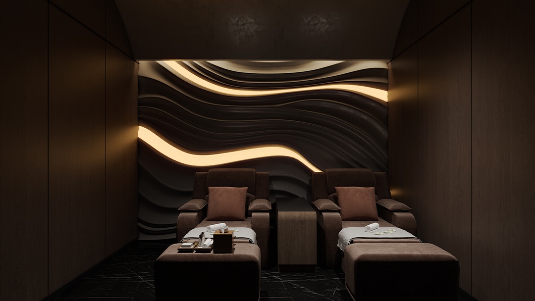 杭州現(xiàn)代輕奢風(fēng)足浴店裝修設(shè)計(jì),本案以“流動(dòng)的靜奢”為基調(diào),采用淺灰大理石與古銅金屬勾勒精致輪廓。空間以弧形燈光帶引導(dǎo)動(dòng)線,包廂采用電動(dòng)霧化玻璃門與絲絨簾雙重隔斷系統(tǒng)。足療區(qū)配備智能感應(yīng)沙發(fā),可一鍵調(diào)節(jié)角度與加熱功能,墻面嵌入山水紋玉石背光板。重點(diǎn)打造“星空冥想廊”——鏡面頂棚嵌入光纖燈陣,結(jié)合地暖溫控與白噪音系統(tǒng),在都市中心營(yíng)造出兼具科技感與治愈力的輕奢養(yǎng)生空間。