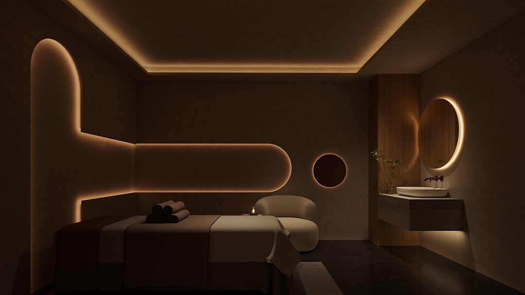 杭州輕奢風(fēng)SPA會(huì)所裝修設(shè)計(jì),本案以“光影謐境”為核心理念,將自然詩(shī)意與當(dāng)代美學(xué)交融??臻g采用微水泥墻面與弧形金屬線條,搭配柔光膜天花營(yíng)造均勻光線。理療室配備智能溫控玉石床與懸吊式香薰霧化系統(tǒng),墻面嵌入漸變水波紋光影裝置。過(guò)光纖燈陣模擬銀河動(dòng)態(tài),結(jié)合地暖系統(tǒng)與自然音效,在靜謐優(yōu)雅中實(shí)現(xiàn)身心的深度舒緩,重新定義都市療愈體驗(yàn)的輕奢標(biāo)準(zhǔn)。
