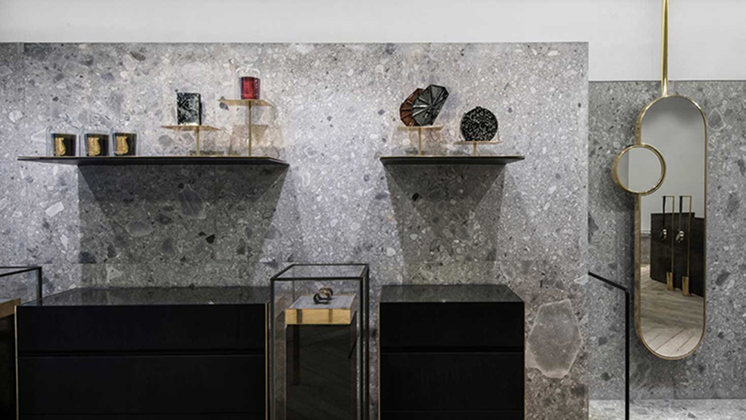 杭州奢侈品珠寶店裝修設計,以高級灰為基調(diào),勾勒出無與倫比的奢華意境。