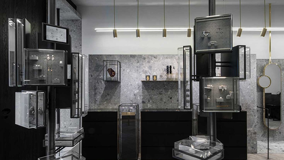在這高級灰的空間里,每一處細節(jié)都經(jīng)過精心雕琢,為顧客打造一場極致的珠寶品鑒之旅,詮釋奢侈品珠寶的獨特魅力與永恒價值。