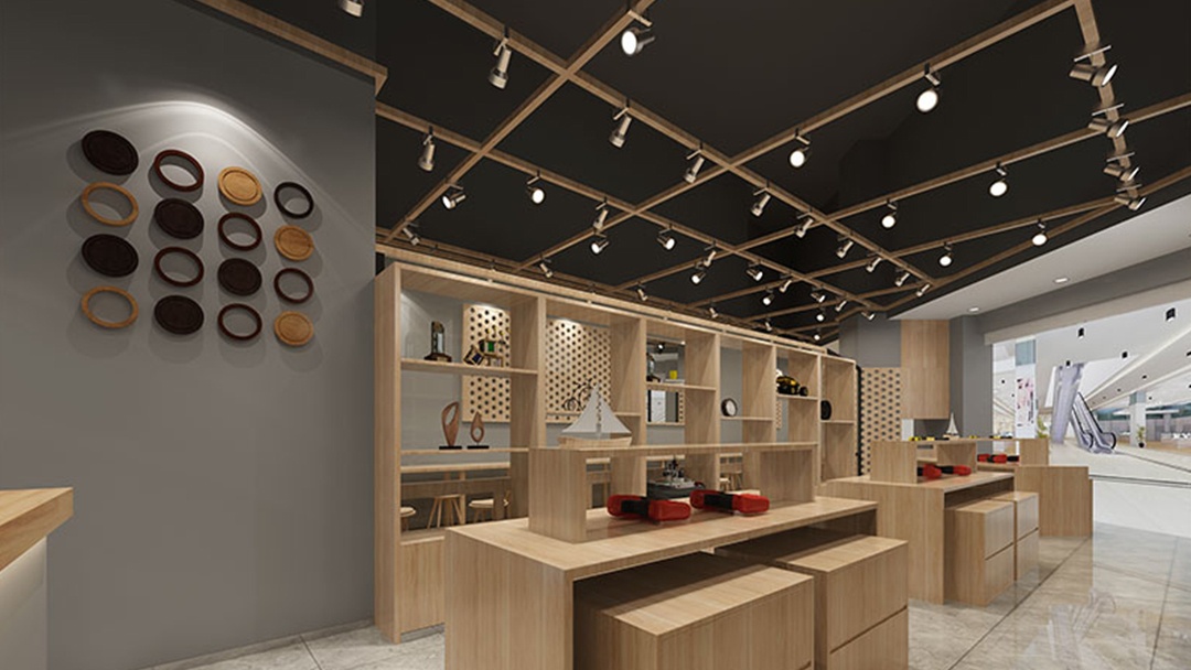 杭州定制珠寶店裝修設(shè)計(jì),以“自然與匠心”為靈感,采用原木色、射燈與裸頂噴黑的組合,打造一個(gè)溫暖而富有藝術(shù)感的珠寶定制殿堂。